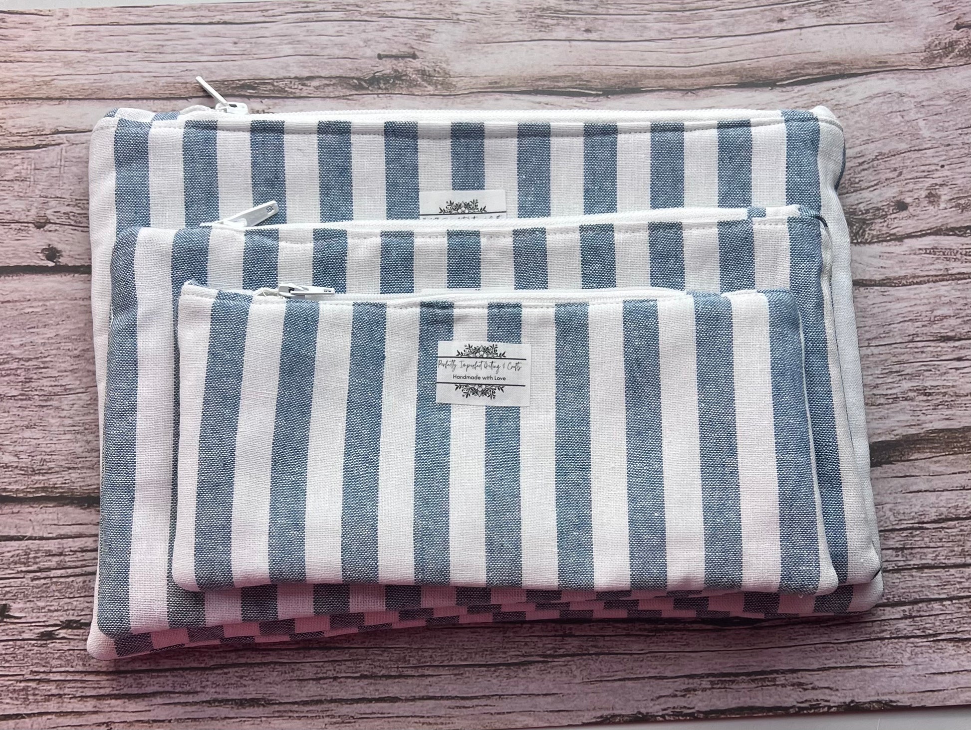 Blue Jean Striped Handmade Quilted Zipper Pouches
