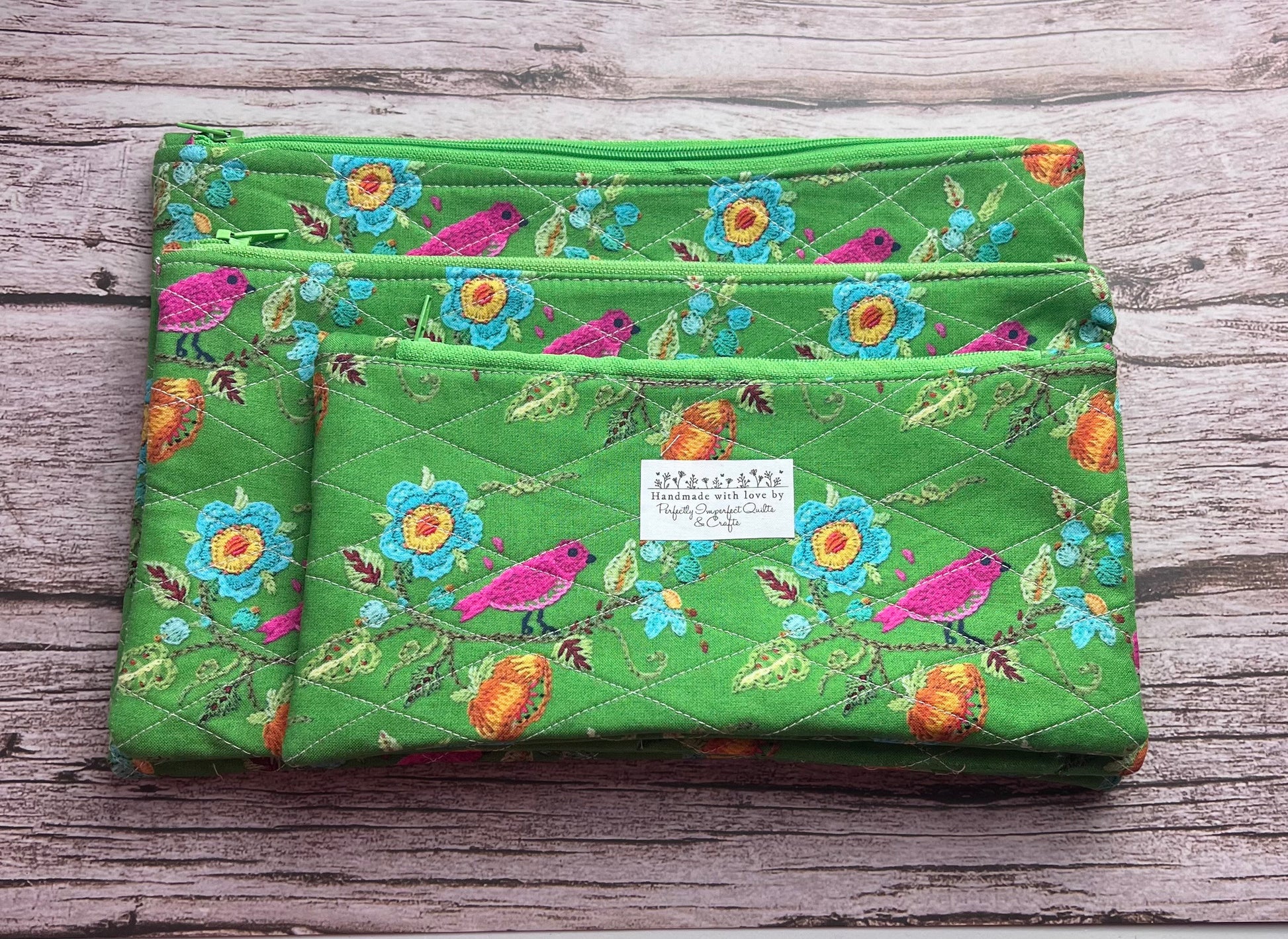 Hot Pink Birdie Handmade Quilted Zipper Pouches