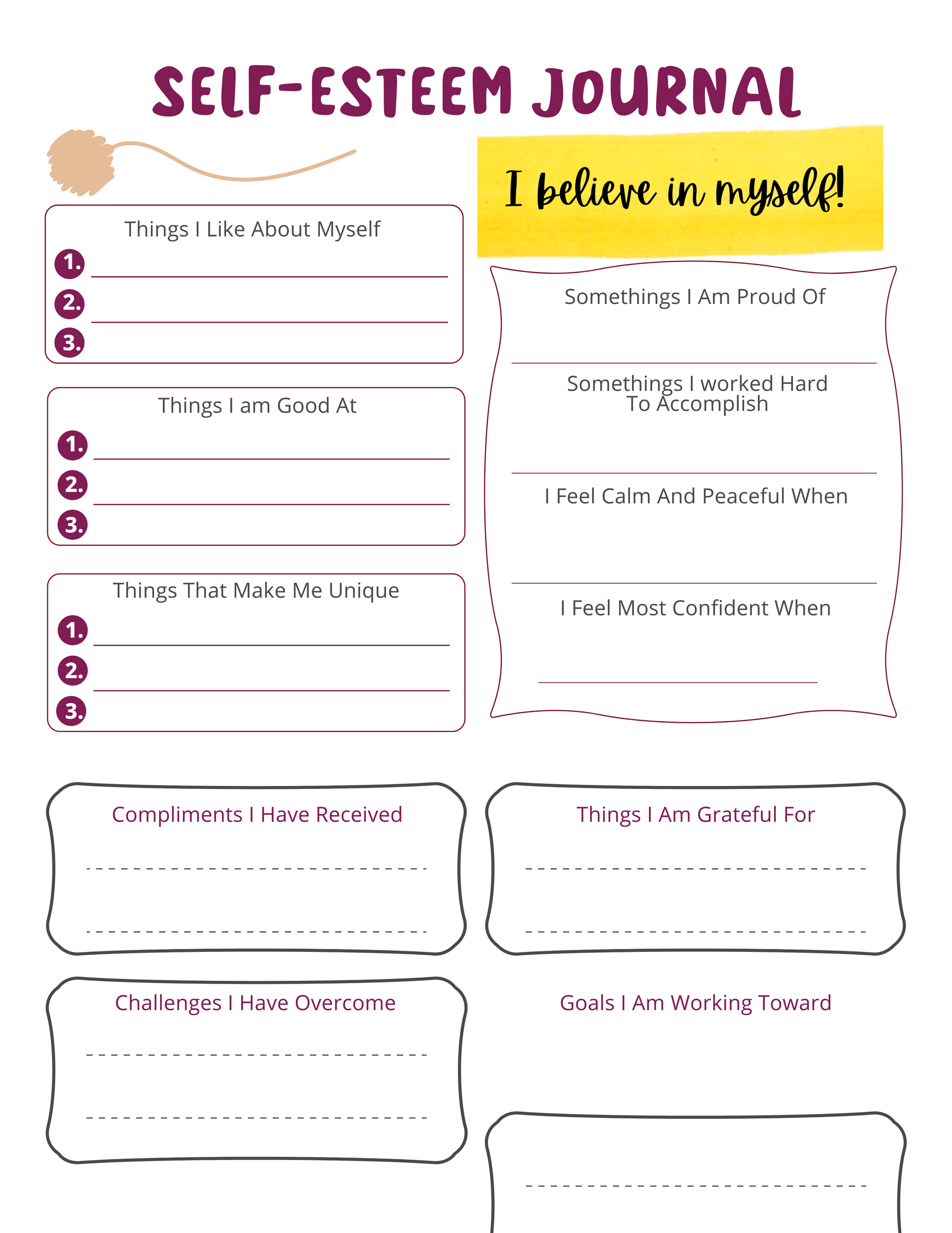 Kids Self-Esteem Journal Digital Download