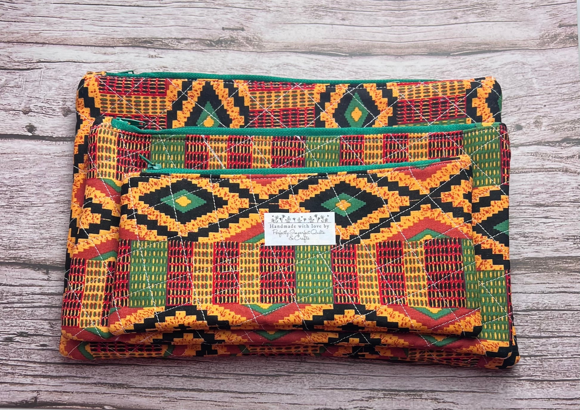 Multicolor Kenti Cloth Print Handmade QuiltedZipper Pouches